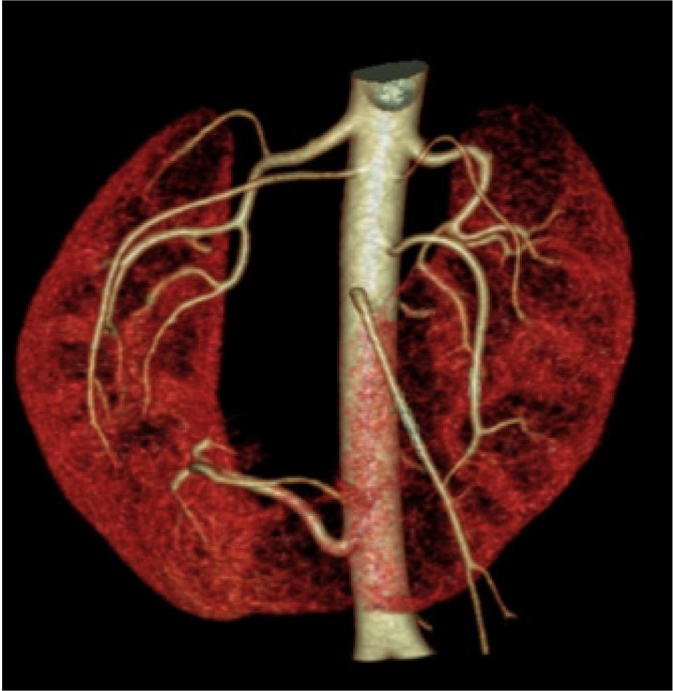 3D reconstruction images after helical CT are extremely useful preoperatively as laparoscopic approach commonly used for the treatment of renal carcinoma (1).