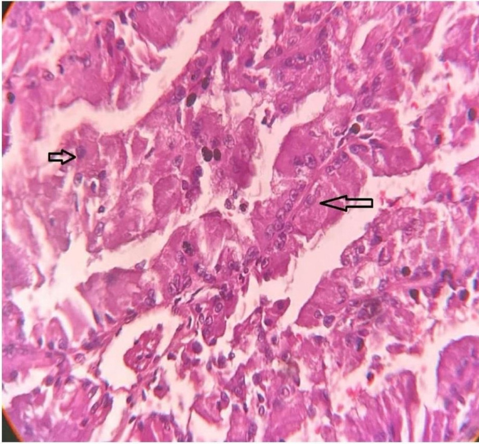 Figure 3: USG-guided tru-cut biopsy of the retroperitoneal mass shows histopathological features of renal cell carcinoma.